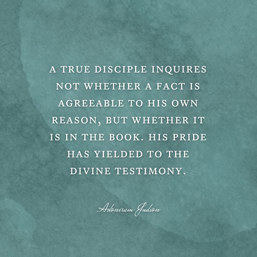 "A true disciple inquires not whether a fact is agreeable to his own reason, but whether it is in the book. His pride has yielded to the divine testimony."