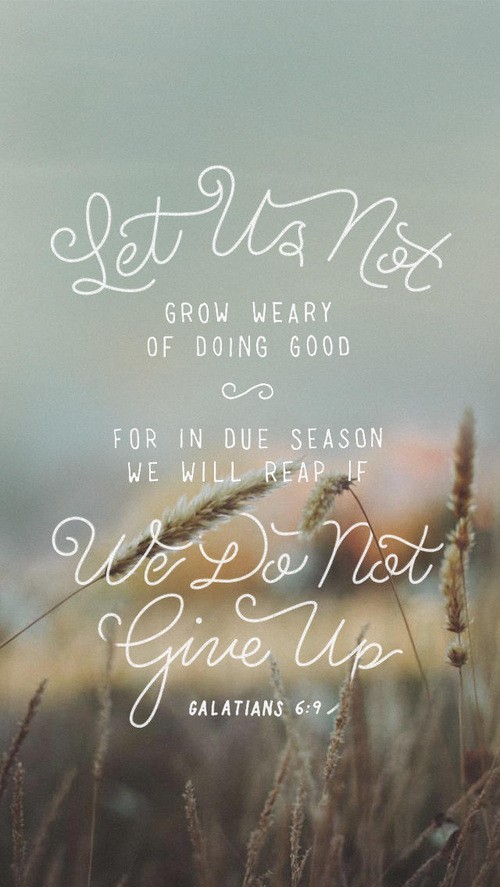 “[And] let us not grow weary of doing good, for in due season we will reap, if we do not give up. So then, as we have opportunity, let us do good to everyone, and especially to those who are of the household of faith.”
