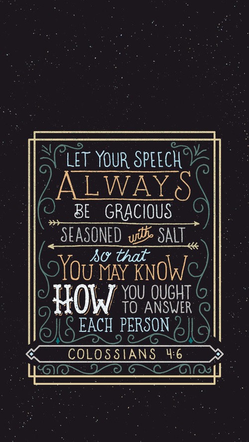 “Let your speech always be gracious, seasoned with salt, so that you may know how you ought to answer each person.”