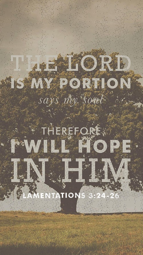 “The LORD is my portion, says my soul, "therefore I will hope in him." ²⁵The LORD is good to those who wait for him, to the soul who seeks him. ²⁶It is good that one should wait quietly for the salvation of the LORD."